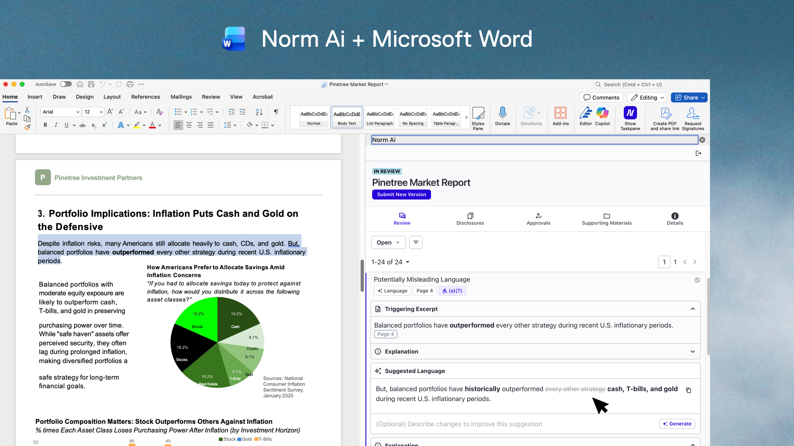Users can review and apply Norm Ai feedback directly in Word and Powerpoint